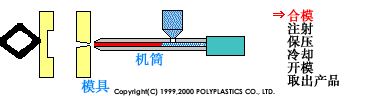 1、合模 2、射出 3、保壓 4、冷卻 5、開模(mó) 6、取出產品